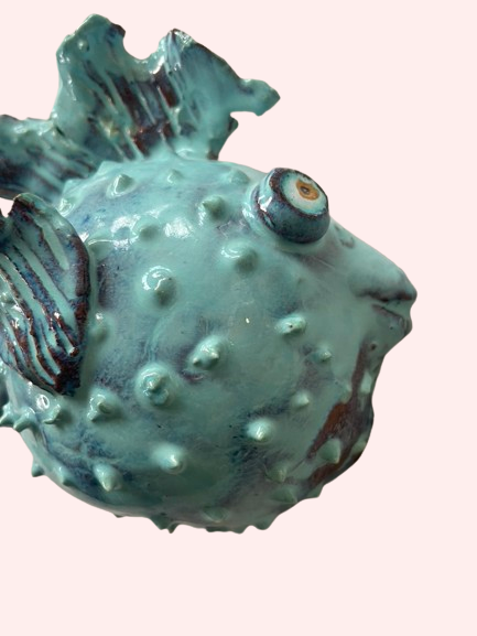 Vidunderlig pindsvinefisk, hvis krop er dækket af et hav af spidse pigge. Hvis pindsvinefisken føler sig truet, tager den vand ind og svulmer op. Fiskene er håndlavede lokalt på Sicilien. Hver fisk er sirligt malet i hånden. Fiskene er enormt dekorative til din boligs vægge - både i køkkenet, på toilettet eller side om side med dine andre værker på billedevæggen.