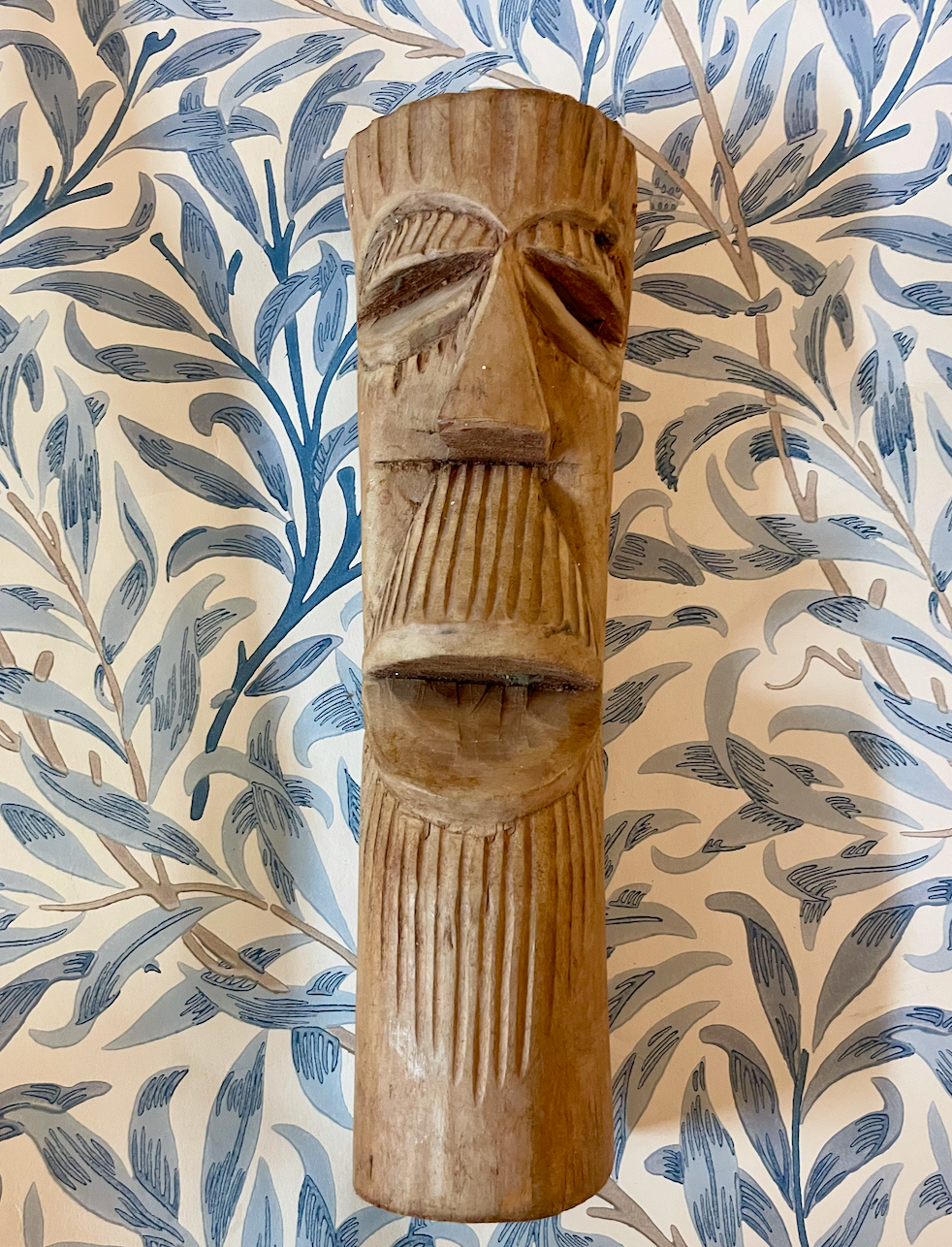 Smuk og unikt træmaske med udskåret og malede detaljer. Indret din gallerivæg med smukke masker side og side med plakater, keramik og anden kunst.