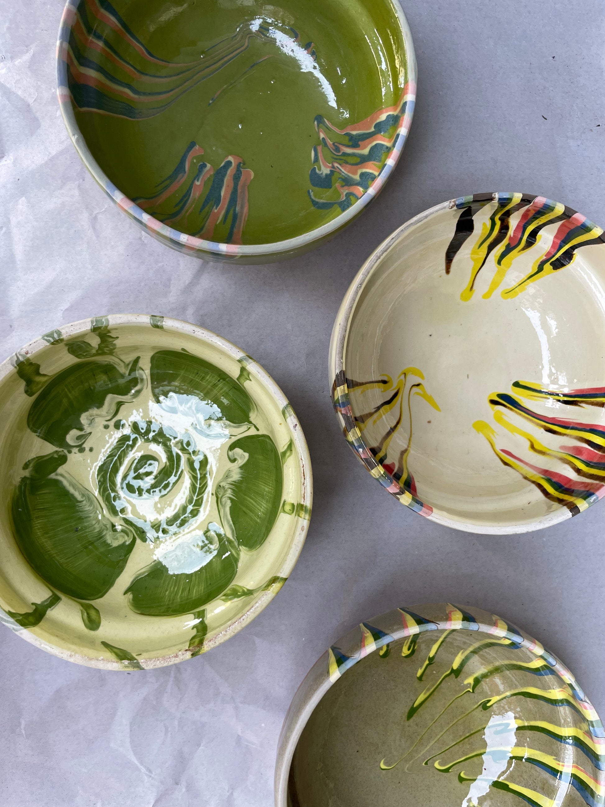 Håndlavet smuk keramik skål med det fineste mønster. Hver skål er unik og ingen er helt ens. Skålen er vintage og utrolig smuk. Keramikken er håndlavet i Rumænien, hvor de har en lang og stolt tradition for keramik.