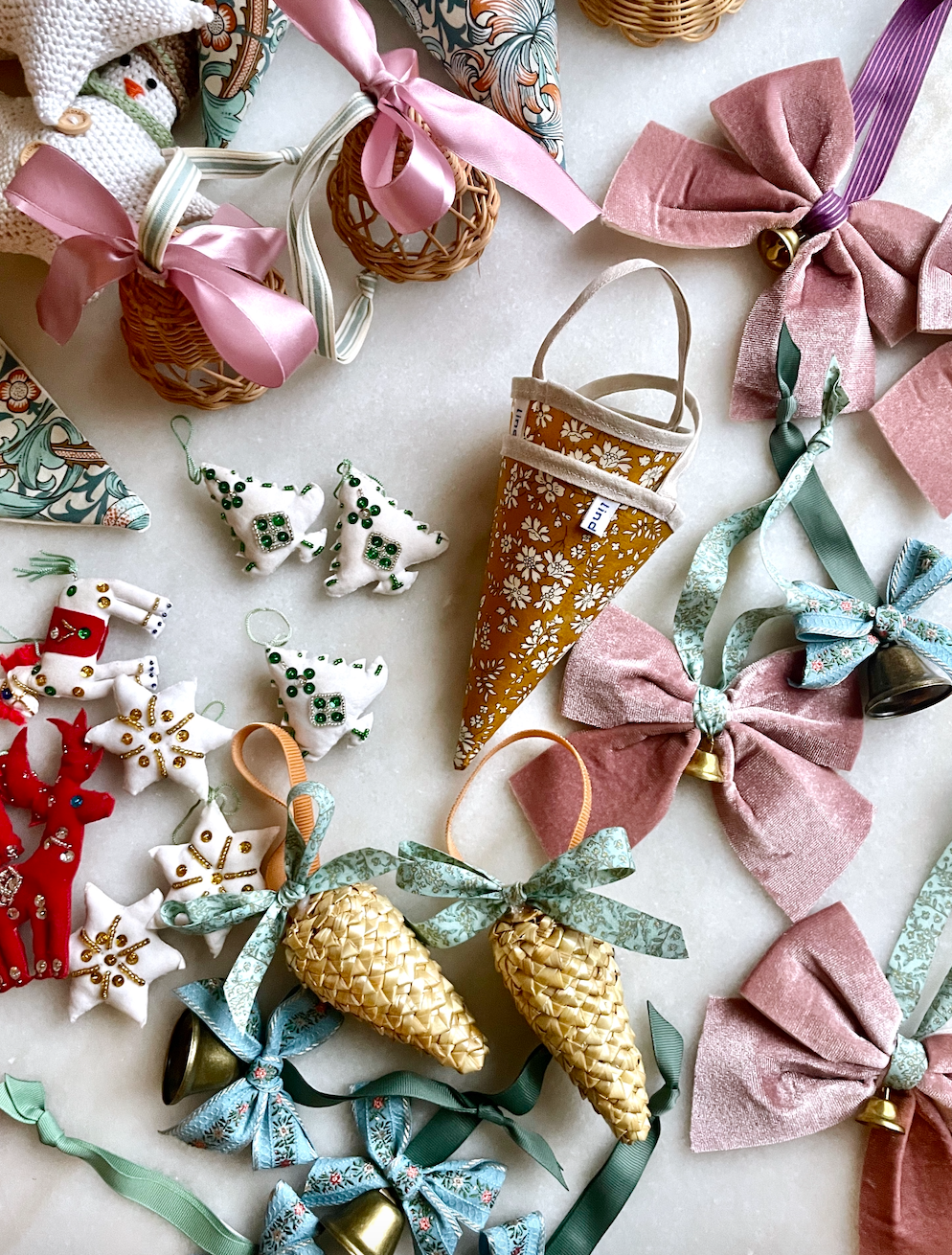 Indret dit julehjem med disse charmerende gamle flettede kogler med smuk sløjfe og bånd. Jeg elsker selv at indrette med håndlavet julepynt, da det bringer nostalgi og charme ind i hjemmet. At pynte med julepynt er som at bringe et stykke historie og tradition ind i julen – perfekt til dem, der elsker et klassisk og nostalgisk udtryk.