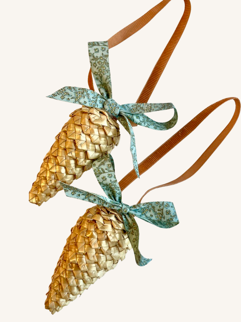 Indret dit julehjem med disse charmerende gamle flettede kogler med smuk sløjfe og bånd. Jeg elsker selv at indrette med håndlavet julepynt, da det bringer nostalgi og charme ind i hjemmet. At pynte med julepynt er som at bringe et stykke historie og tradition ind i julen – perfekt til dem, der elsker et klassisk og nostalgisk udtryk.
