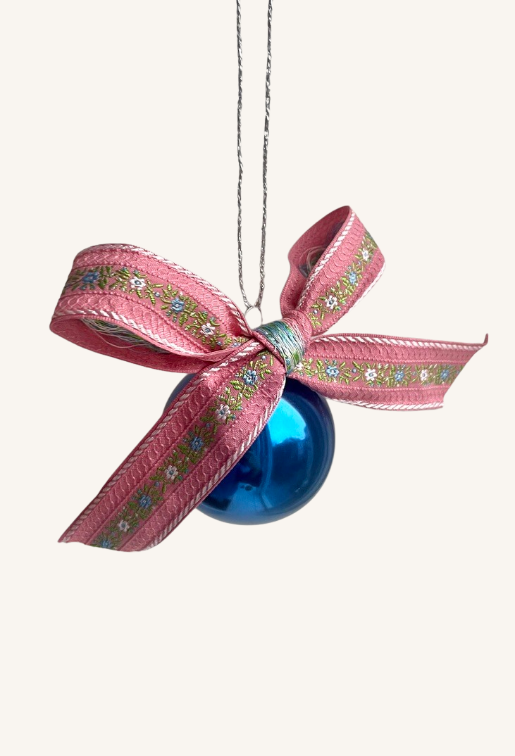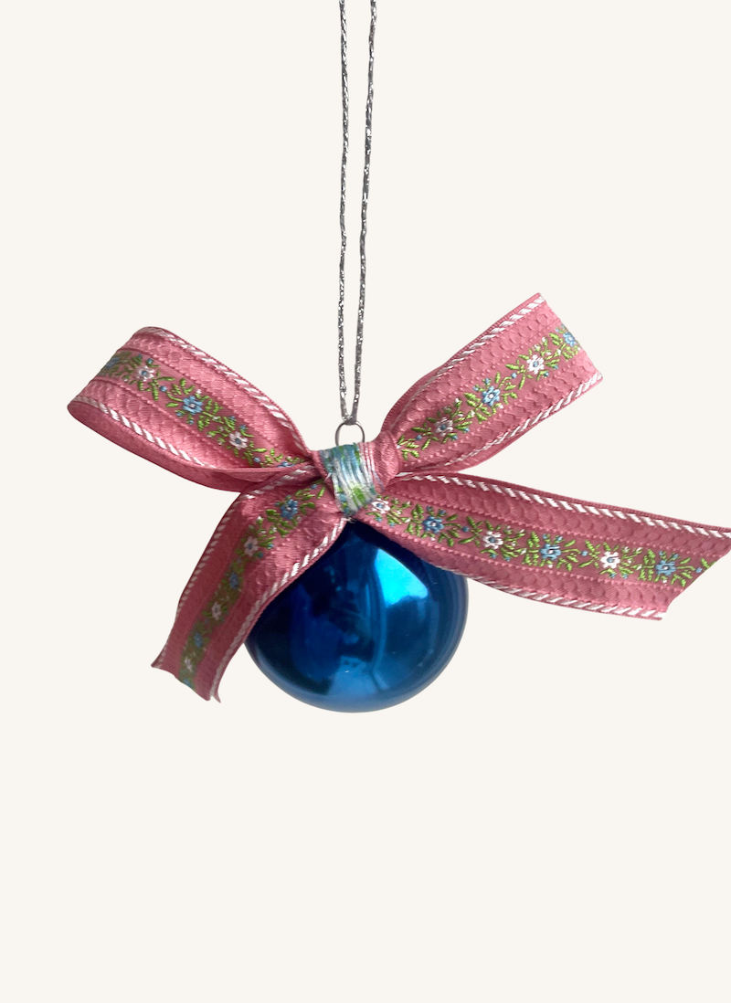 Pynt dit juletræ med de smukke vintage julekugler i blank blå og smukt rosa bånd.